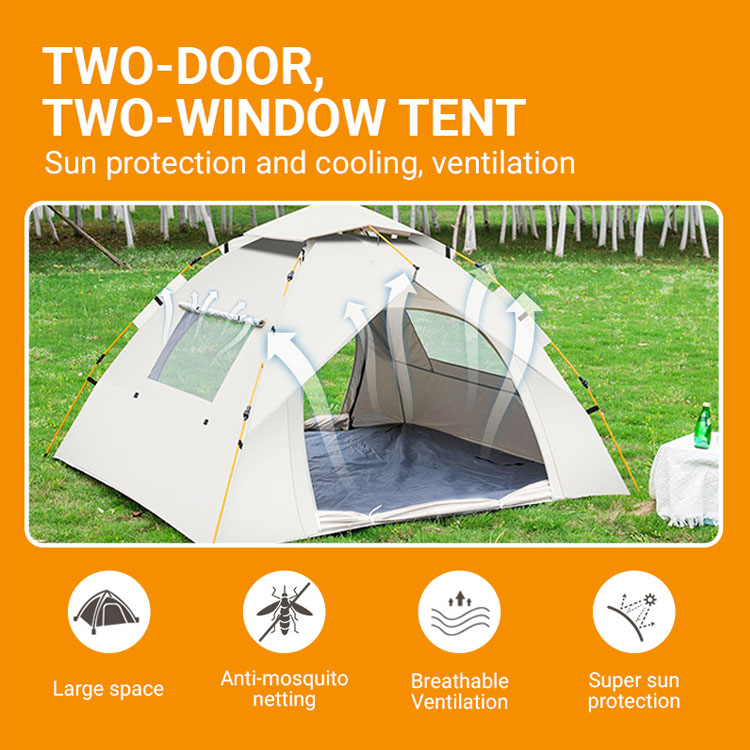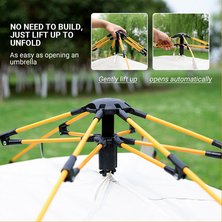 Tenda automatica a doppio strato 210D Oxford impermeabile antipioggia. Il tuo rifugio per tutte le stagioni per avventure all'aria aperta. Questa tenda a doppio strato Oxford 210D è dotata di installazione automatica e protezione antipioggia superiore. Con pali leggeri in fibra di vetro e design facile da trasportare, è perfetto per il campeggio e le gite al barbecue.