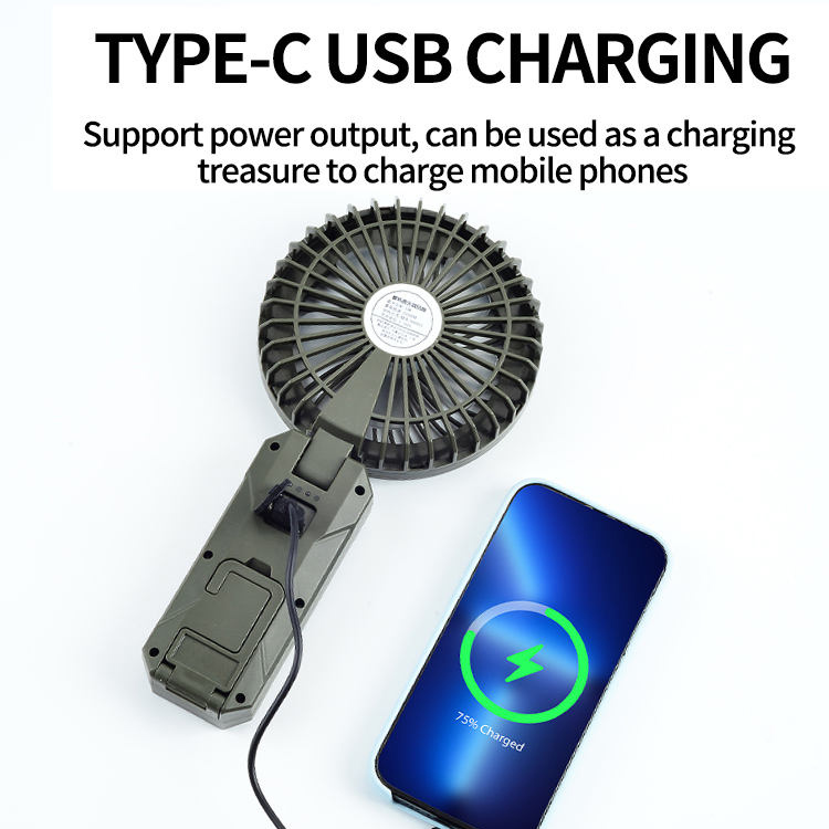 Dotato di una batteria ricaricabile ad alta capacità che garantisce un funzionamento prolungato sia della ventola che della luce. Può essere facilmente ricaricato tramite USB, rendendolo ideale per escursioni di più giorni senza accesso alla corrente.