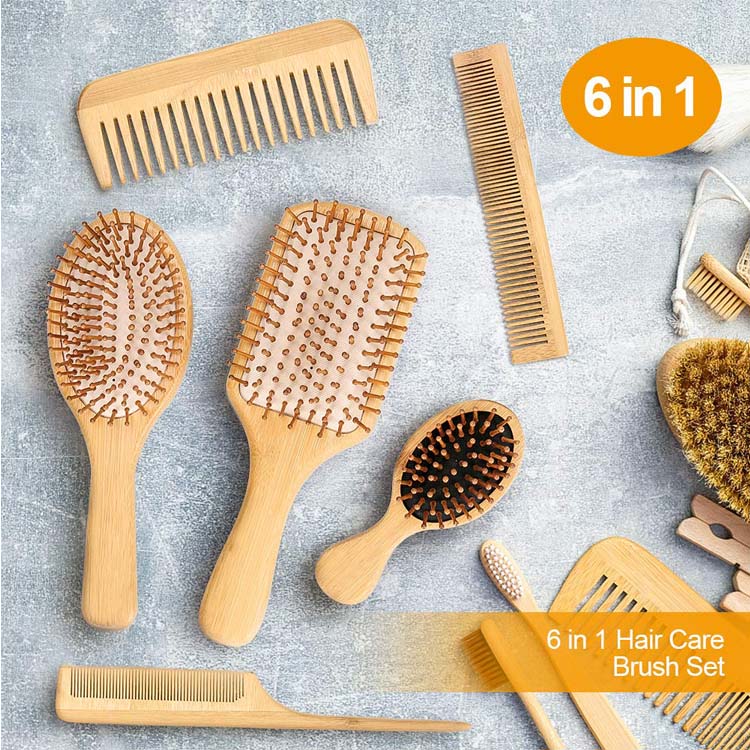 Set di spazzole per capelli con pettine da massaggio 6 in 1 Spazzole per capelli in bambù