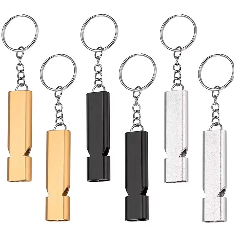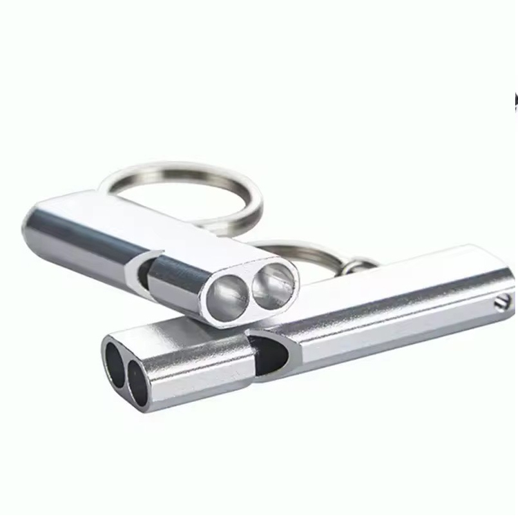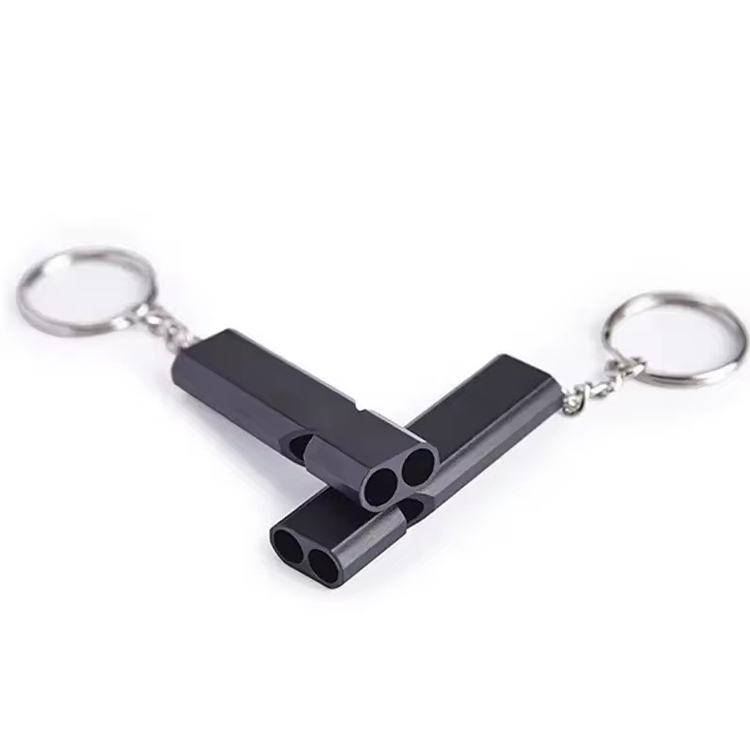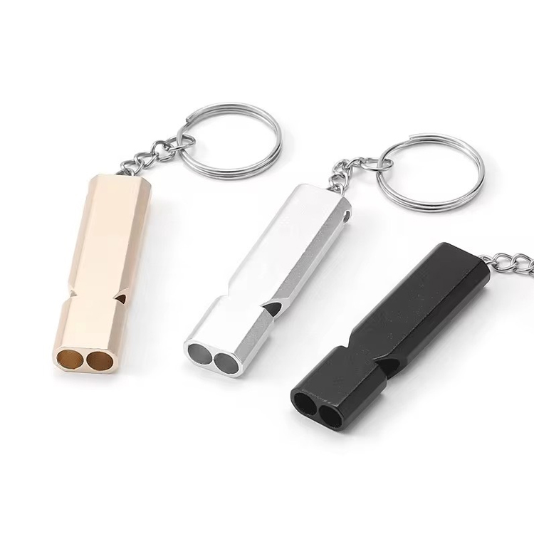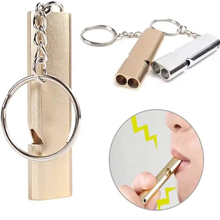 Portachiavi di sicurezza portatile a doppio tubo con fischietto di sopravvivenza in alluminio