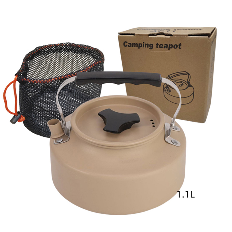Set di pentole da campeggio con bollitore e set di pentole portatili. La tua soluzione da cucina portatile definitiva per avventure di gruppo. Questo set di pentole da campeggio in alluminio include un bollitore versatile e pentole multiple. Progettato per servire in modo efficiente 3-4 persone, combina leggerezza, resistenza e pratiche prestazioni all'aperto.