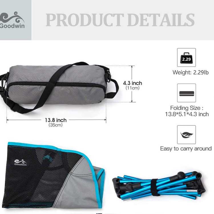 Sedia da campeggio pieghevole compatta portatile ultraleggera. Goditi il comfort ovunque con questa sedia pieghevole portatile ultraleggera. Compatto e facile da trasportare grazie alla pratica borsa, è perfetto per le gite in spiaggia, il campeggio, lo zaino in spalla, l'escursionismo o qualsiasi avventura all'aria aperta in cui il comfort incontra la praticità.