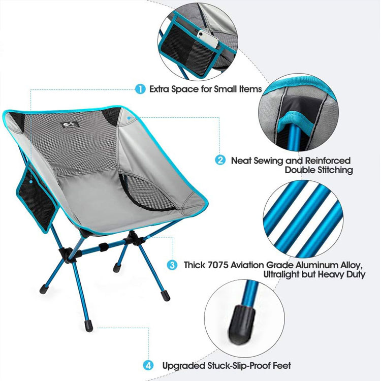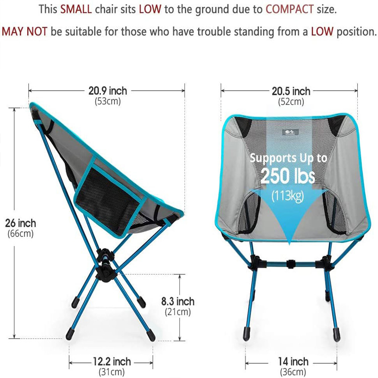 Sedia da campeggio pieghevole compatta portatile ultraleggera. Goditi il comfort ovunque con questa sedia pieghevole portatile ultraleggera. Compatto e facile da trasportare grazie alla pratica custodia’È perfetto per le gite in spiaggia, il campeggio, lo zaino in spalla, l'escursionismo o qualsiasi avventura all'aria aperta in cui il comfort incontra la praticità.