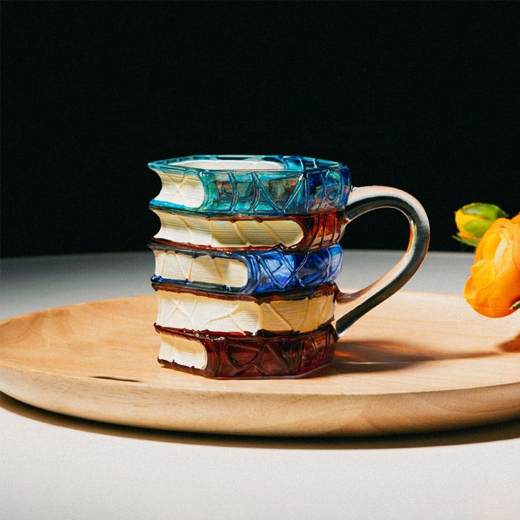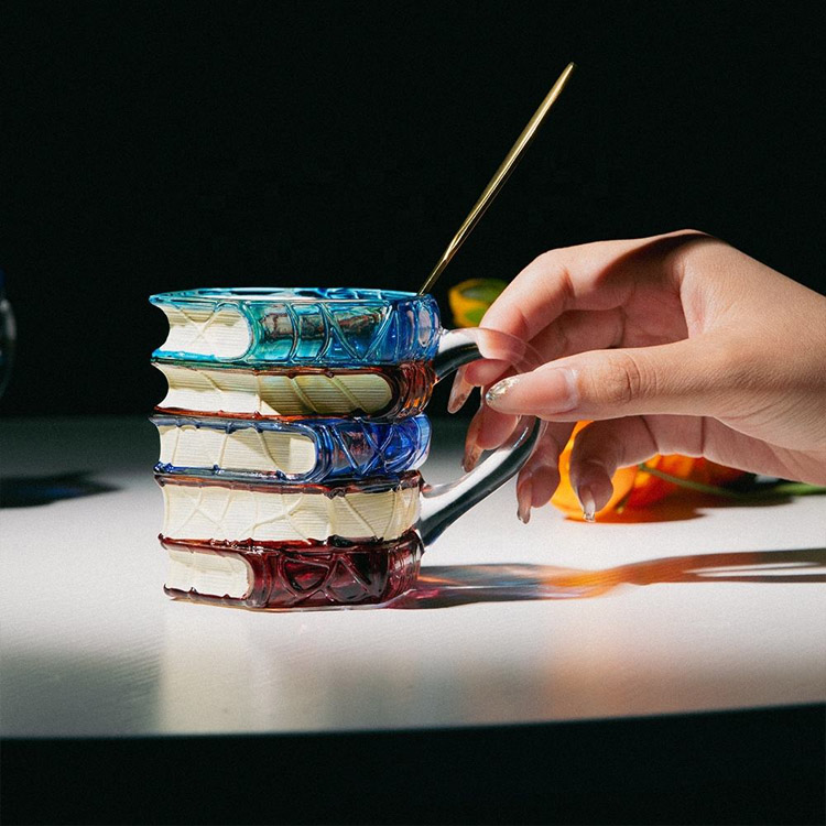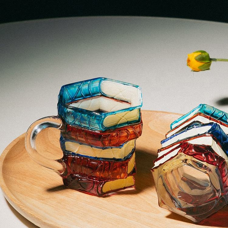 Tazza da caffè in vetro dipinta a mano Tazza da caffè con libro dipinto in 3D