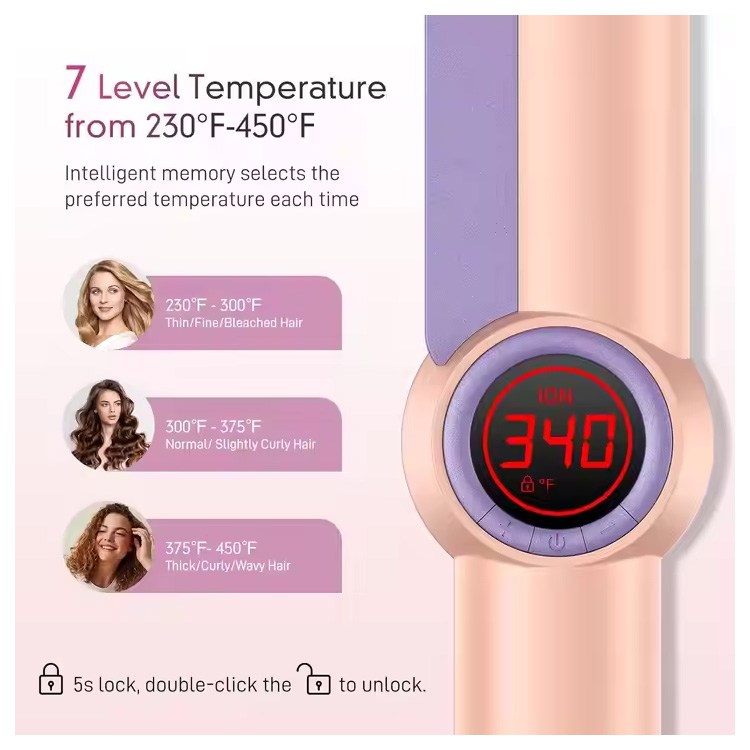 Dispone di impostazioni di calore personalizzabili per adattarsi a capelli fini, medi o grossolani. Che tu stia stirando, arricciando o ondulando, puoi selezionare la temperatura ideale per modellare in modo efficiente senza rischiare danni da calore.