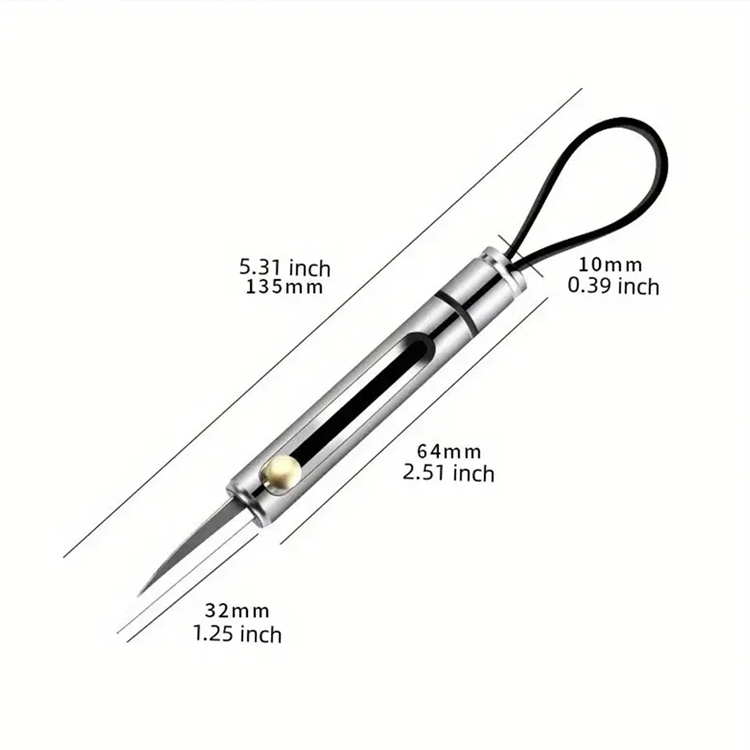 Misurando solo 2,5 pollici e pesando solo 0,8 once, questo strumento si attacca perfettamente al tuo portachiavi o allo zaino, assicurandoti di avere sempre una soluzione di taglio prontamente disponibile.