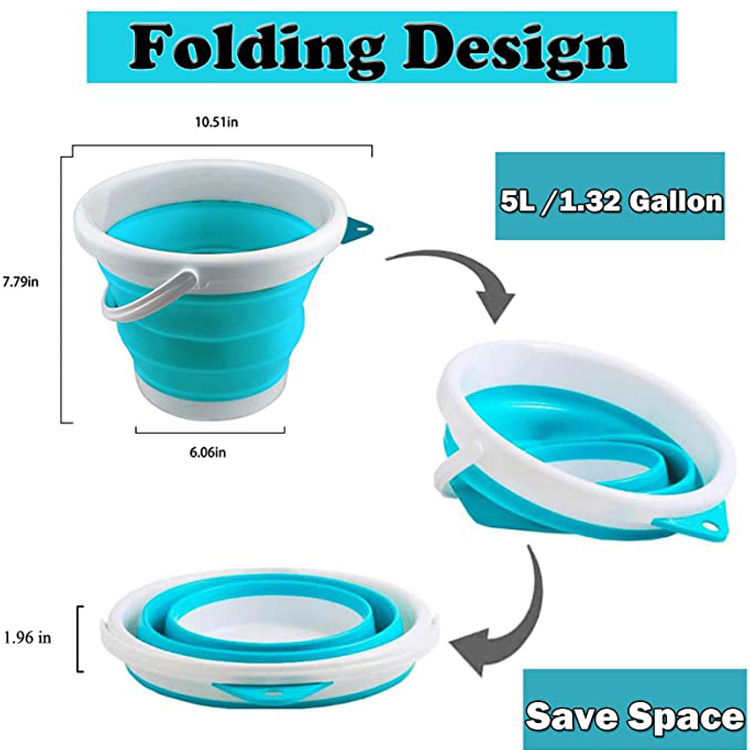 1.3Secchiello per il ghiaccio pieghevole da galloni, secchio pieghevole con manico, secchio pieghevole in plastica per la pulizia della casa, secchio da giardinaggio resistente senza BPA per escursionismo, zaino in spalla, campeggio,5L-BluSecchio pieghevole