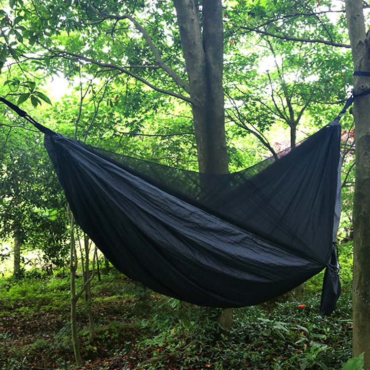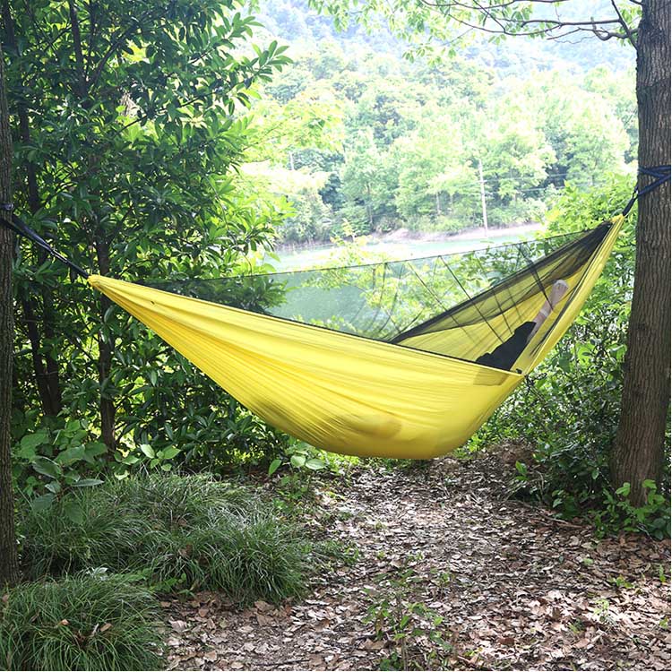 Presenta zanzariera in poliestere 210T con bordi rinforzati e corpo dell'amaca in nylon 70D, creando il perfetto equilibrio tra protezione traspirante dagli insetti e capacità di carico durevole.