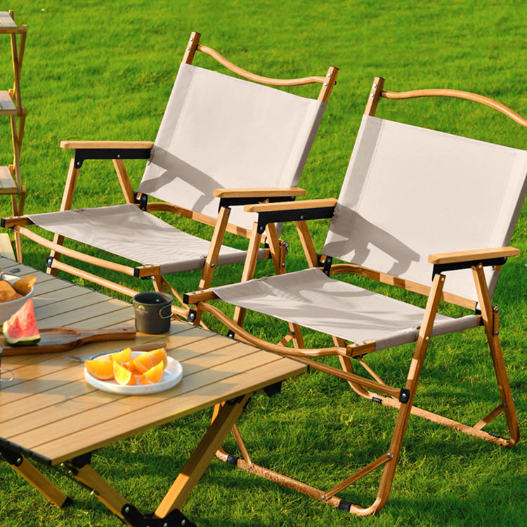 Sedia da campeggio pieghevole da viaggio portatile da spiaggia per pranzo all'aperto. La tua soluzione di seduta portatile di prima qualità per uso interno ed esterno. Questa sedia da viaggio molto venduta combina un telaio leggero e pieghevole con eleganti accenti in acciaio e legno massello. Perfetto per cene all'aperto, relax in spiaggia e avventure in campeggio, offre stile e resistenza.