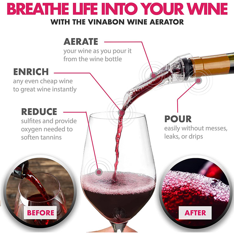 【Rendi il tuo vino immediatamente saporito】Il nostro versatore aeratore per vino progettato con un sistema di aspirazione dell'aria con l'effetto Bernoulli per aerare istantaneamente il tuo vino quando viene versato, il che si traduce in così tante bolle d'aria che volano lungo il tubo, assicurandoti di avere un bicchiere di vino perfetto in meno tempo.