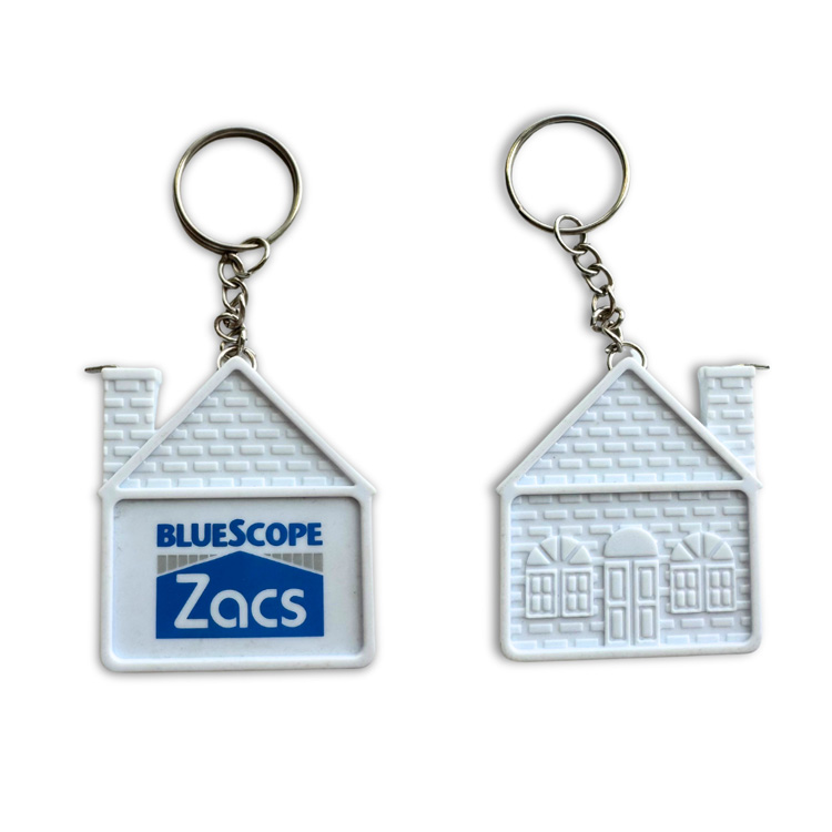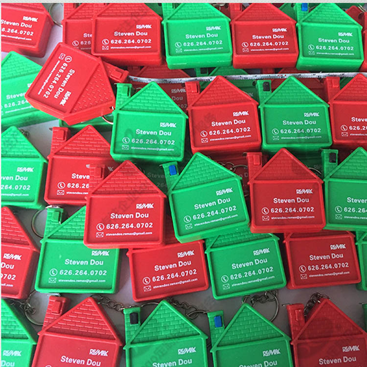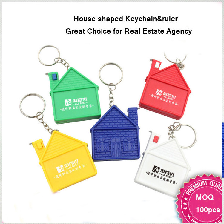 Prodotti promozionali Righello portachiavi stampato a forma di casa. Righello portachiavi promozionale a forma di casa immobiliare con logo personalizzato, perfetto per la pubblicità e la notorietà del marchio. Realizzato con materiali durevoli, questo strumento pratico e accattivante combina funzionalità con un design unico, ideale per clienti, eventi e omaggi.