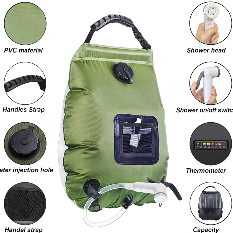 Borsa da doccia da campeggio con riscaldamento solare portatile per doccia da campeggio