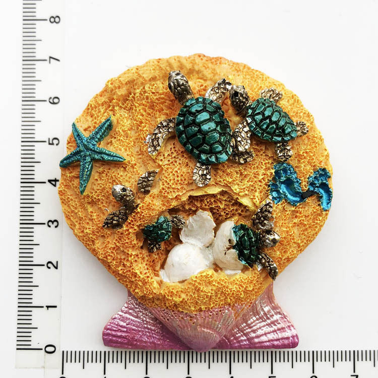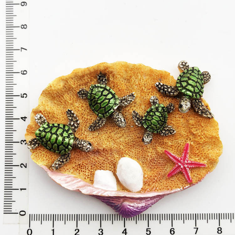 Caratterizzato da un'adorabile forma di stella marina ornata da tre tartarughe riccamente dettagliate, questo magnete da frigo cattura la bellezza dell'oceano in un'affascinante opera d'arte in miniatura. Ogni elemento è accuratamente scolpito per dare un tocco realistico e decorativo alla tua casa.