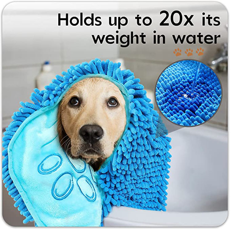 · Super assorbimento: l'asciugamano sporco per cani realizzato in materiale di ciniglia super assorbente può asciugare il tuo cane 8 volte più velocemente di un normale asciugamano di cotone; la fibra "noodle" massaggia il corpo del cucciolo, rendendolo disposto ad aspettarti alla porta per pulire le zampe fangose